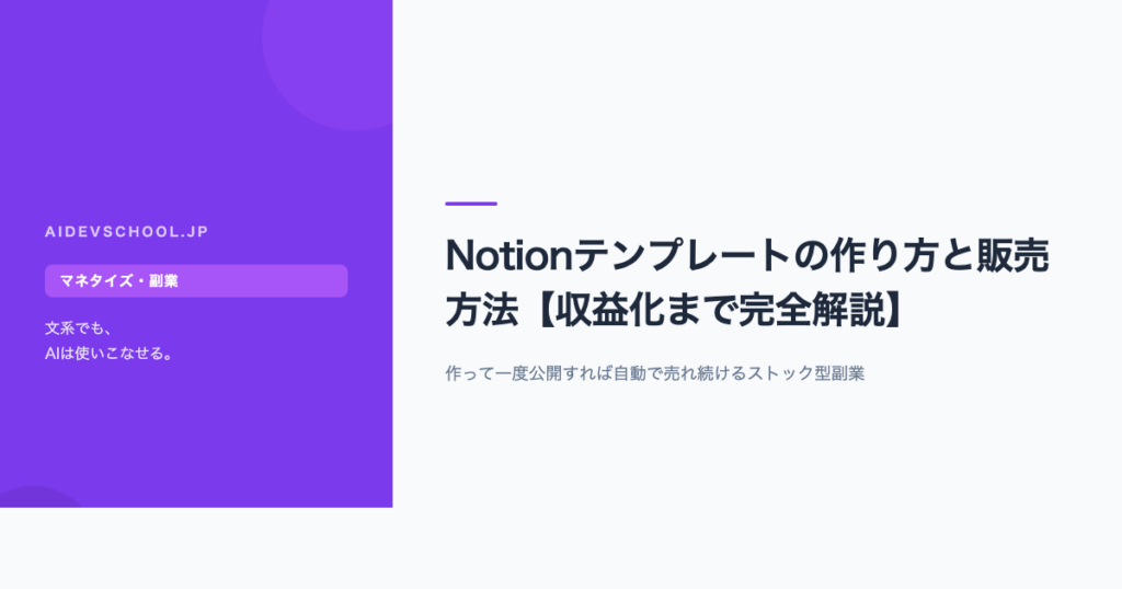 Notionテンプレートは、作って一度公開すれば自動で売れ続ける「ストック型副業」です。初期投資はほぼゼロ、プラットフォーム手数料5〜10%のみ。私が実際に販売している3テンプレートの設計・販売方法を公開します。 Notionテンプレートとは何か?なぜ売... -