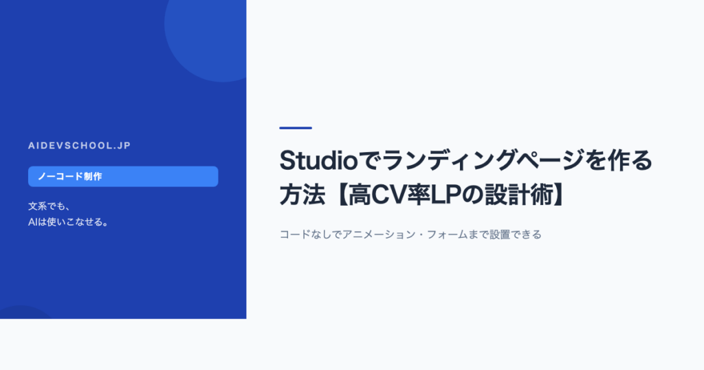 Studioはランディングページのためにあるようなツールです。コードなしでアニメーション・動画背景・フォームまで作れ、公開まで最短1日。この記事では高コンバージョンLPをStudioで作る手順とコツを解説します。 StudioでLPを作るメリットは何か? 従来の... -