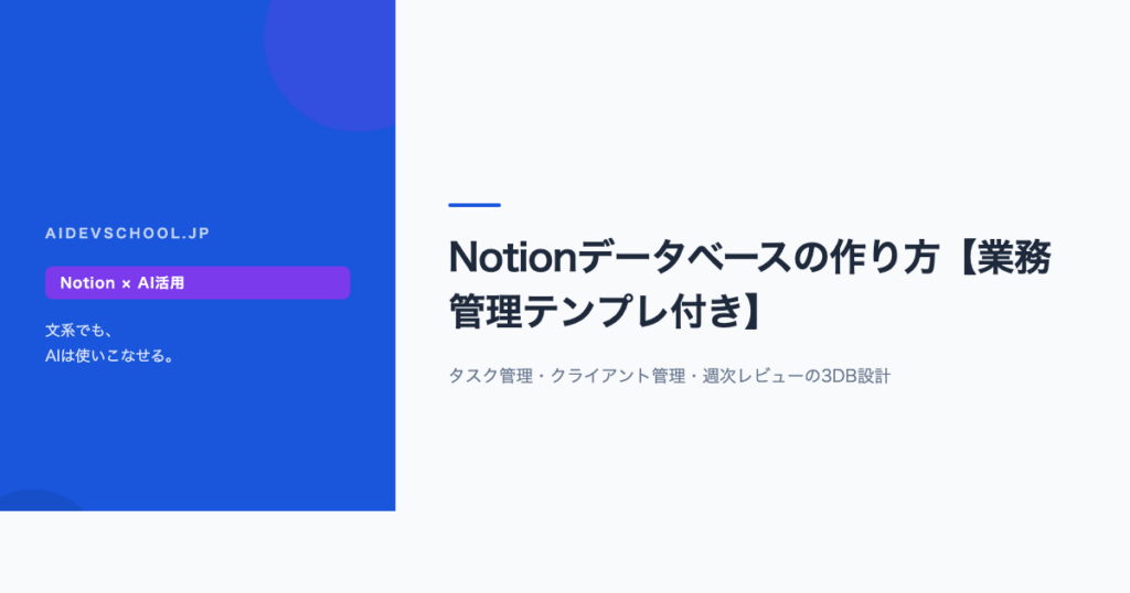 Notionデータベースは、Excelを超えた「動くデータ管理システム」です。タスク管理・クライアント管理・経費管理——あらゆる業務情報を一か所に集約し、AIと連携させることで自動化まで見えてきます。この記事では実際の業務で使えるデータベース設計を、具... -